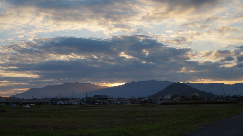畝傍山の向こうに陽が沈みます。雲が綺麗だったが、その綺麗さが写真には写りませんね。やはり目で見た感じには勝りません。